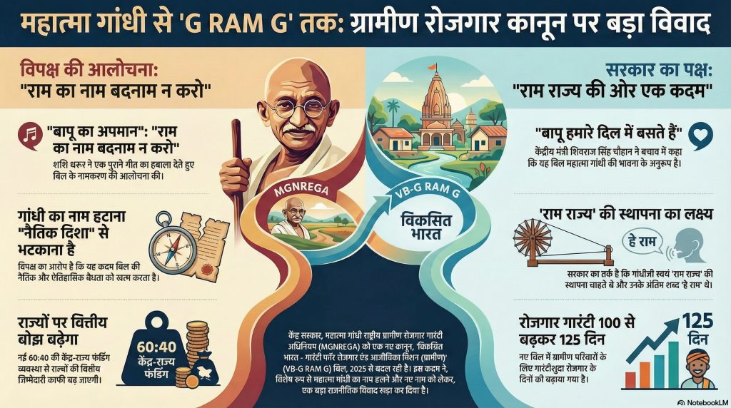 चौहान ने तर्क दिया कि विपक्ष “G RAM G” (जी राम जी) नाम से इसलिए परेशान है क्योंकि इसमें ‘राम’ का नाम आ गया है। उन्होंने याद दिलाया कि गांधीजी के अंतिम शब्द भी ‘हे राम’ थे और ग्राम स्वराज के साथ राम राज्य की स्थापना उनका मुख्य उद्देश्य था।
